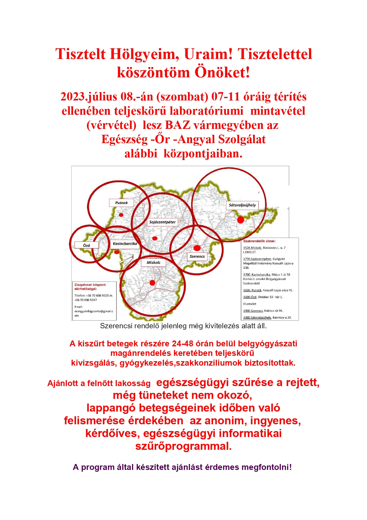 Felhívás-Egészség Őrangyal Szolgálat