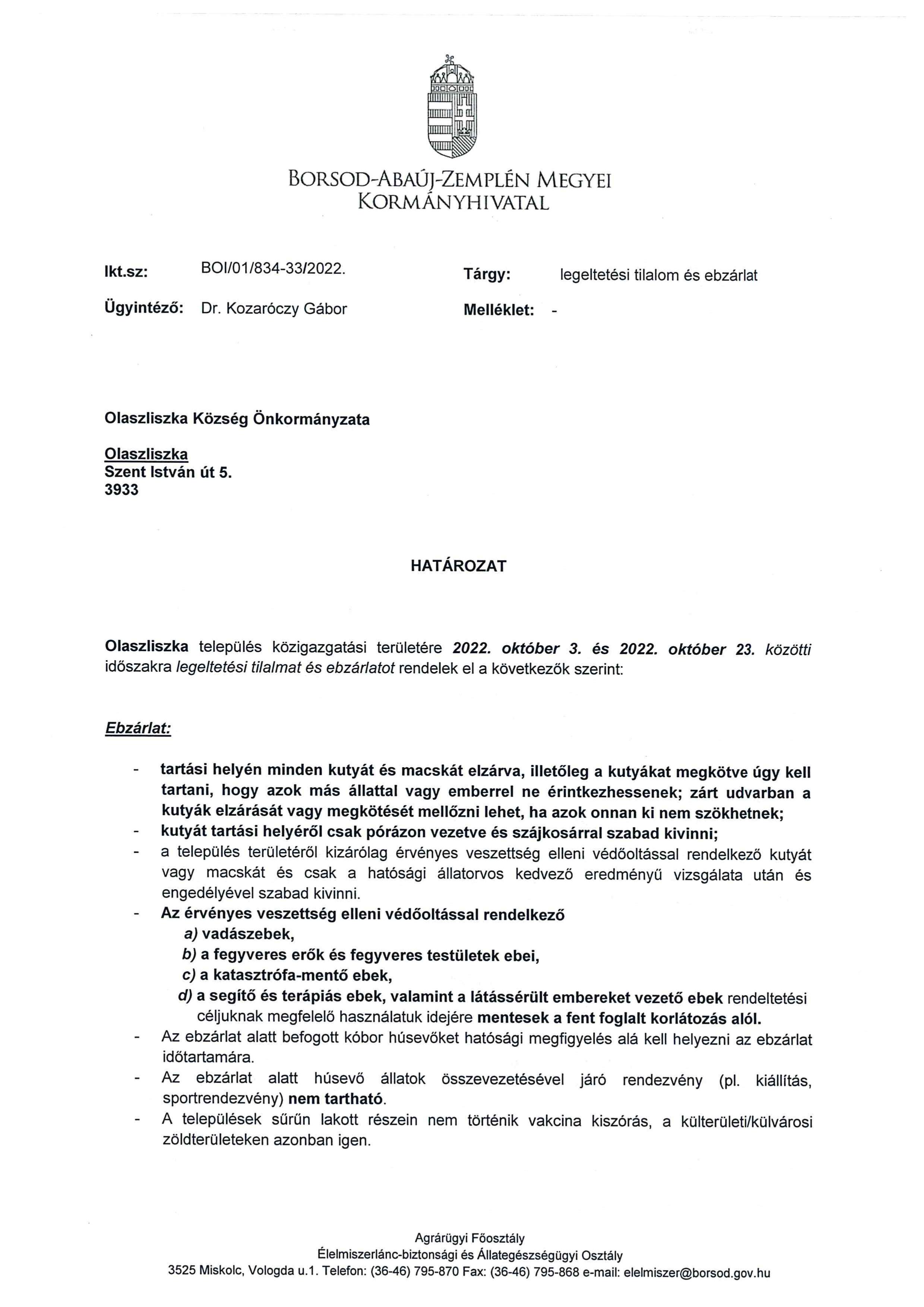 Legeltetési tilalom és ebzárlat