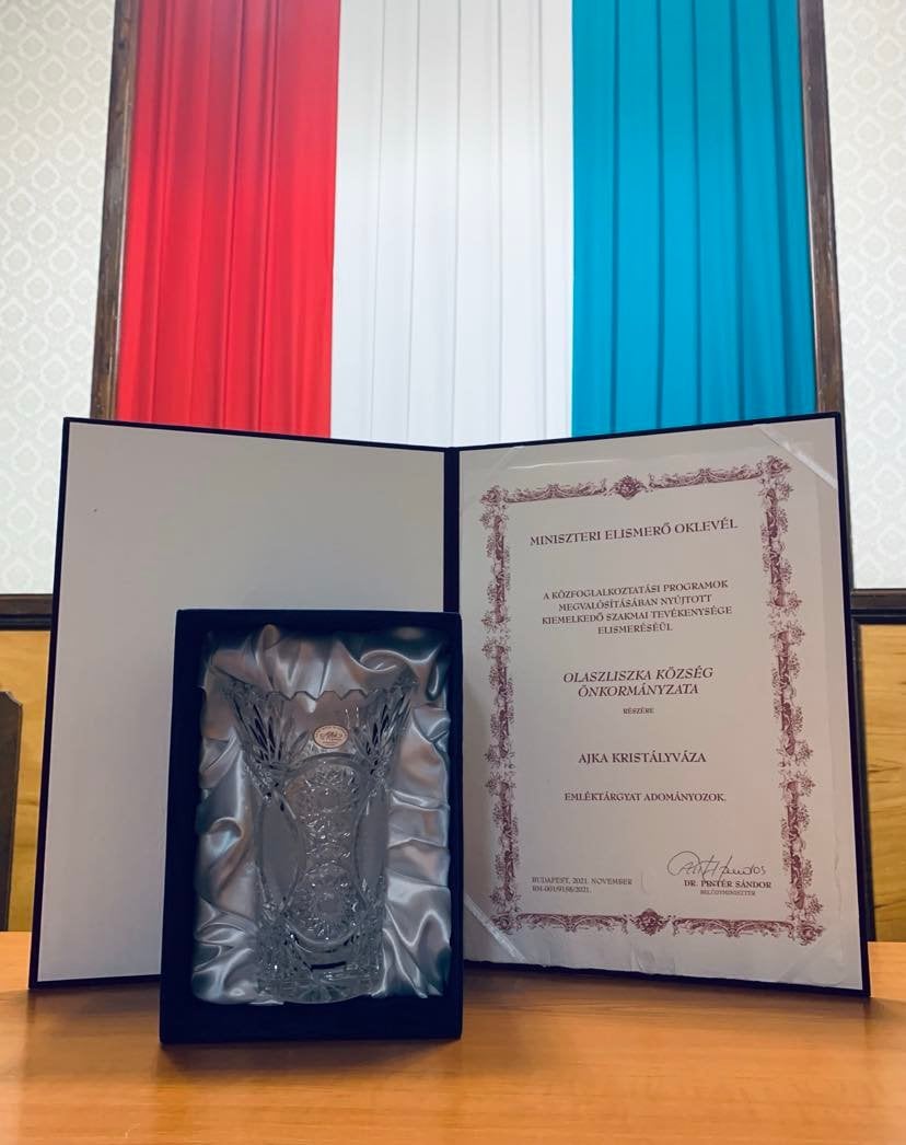 Olaszliszka Község Önkormányzata Miniszteri elismerő oklevélben részesült
